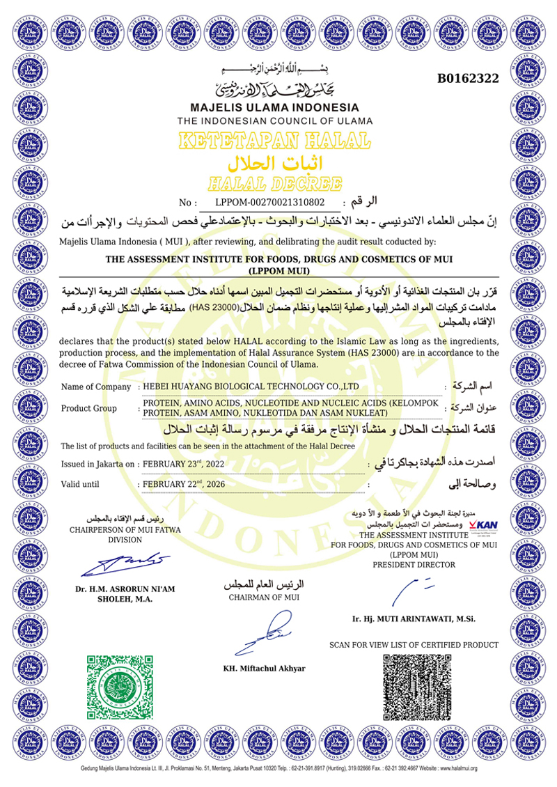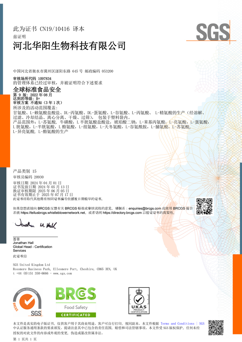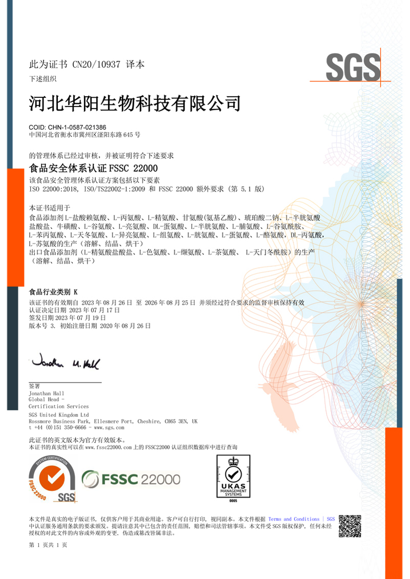 河北華陽集團坐落于河北省衡水市冀州區(qū)省級工業(yè)園區(qū)(始建于1987年,前身為冀州市華陽化工有限責任公司)。集團下屬四個公司:河北華陽生物科技有限公司、河北華悅氨基酸科技有限公司、滄州華晨生物科技有限公司、衡水市陽力商貿有限公司。主要生產(chǎn)甘氨酸、L-丙氨酸、L-蘇氨酸、DL-蛋氨酸、L-賴氨酸鹽酸鹽、L-半胱氨酸鹽酸鹽、干貝素等氨基酸系列食品級產(chǎn)品,廣泛應用于食品、飲料、飼料等行業(yè)。......